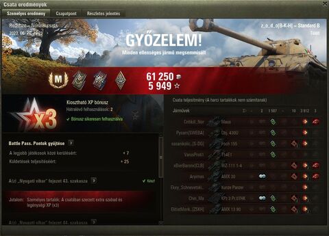 Sebzése is alig több, mint 2k. Ma első csatámban amcsi tankkal fértem be az első hétbe a sok francia közé. Mind csak menekült nem harcolt itt is ugyanolyan nyomik játszanak. Pedig még kredit sem kell a tank javításhoz ha azt sajnálná. -
