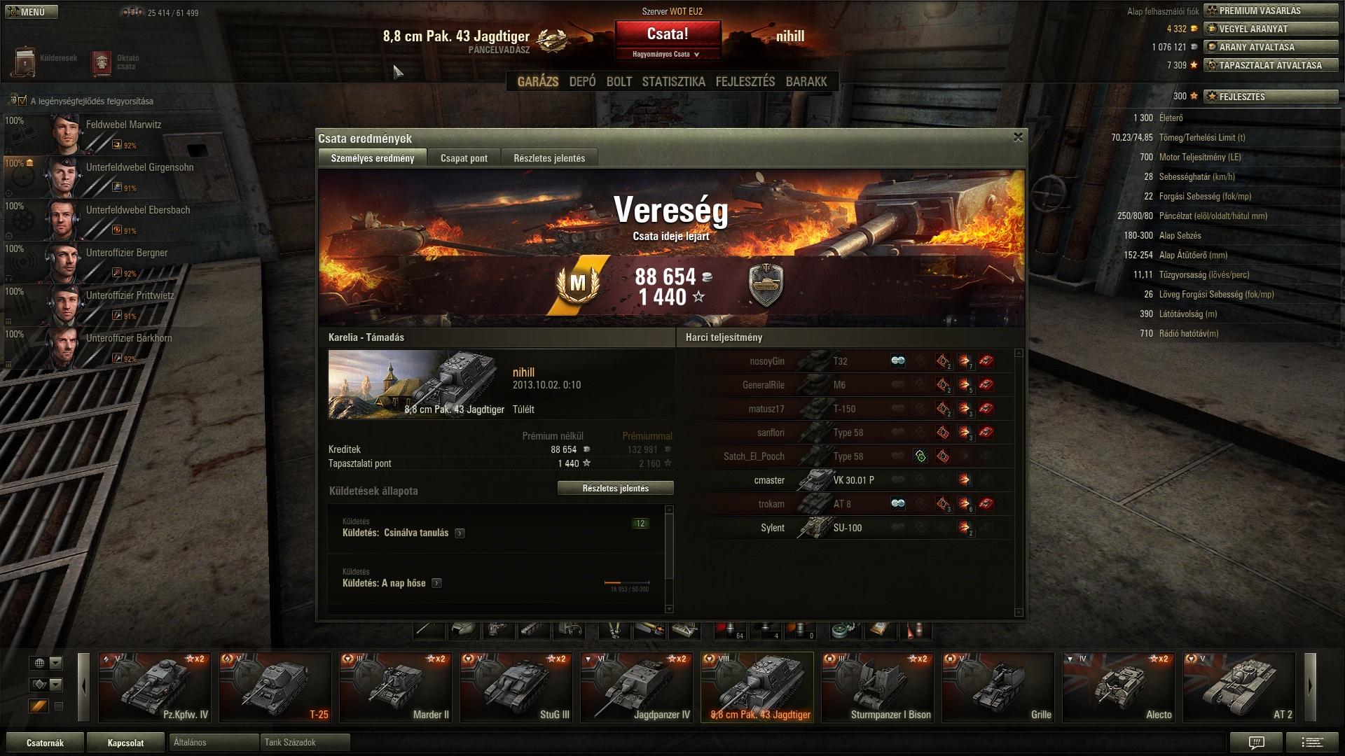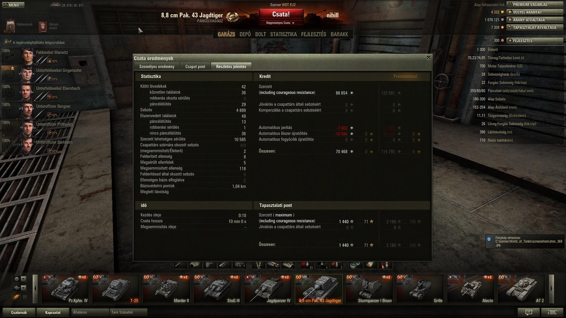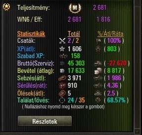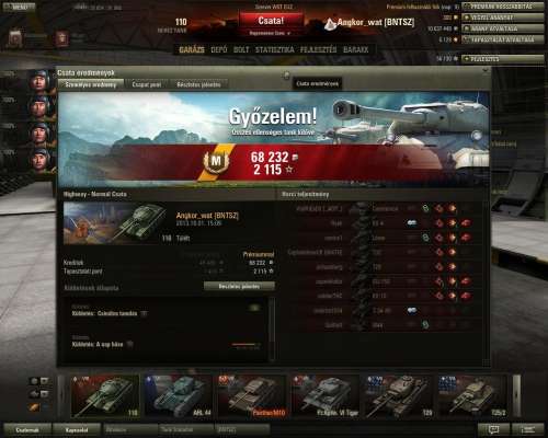 Igen mondjuk az előző hétvége volt a legkeményebb, mert a győzelemért kaptál 250K-t ha összejött, a sebzésért folyamatosan 25ezreket, ha összejött az 50ezer tp akkor prémet... Egy hétvége alatt meglett egy 9-es harckocsi ára, pedig 100 se meccset játszottam összesen.
