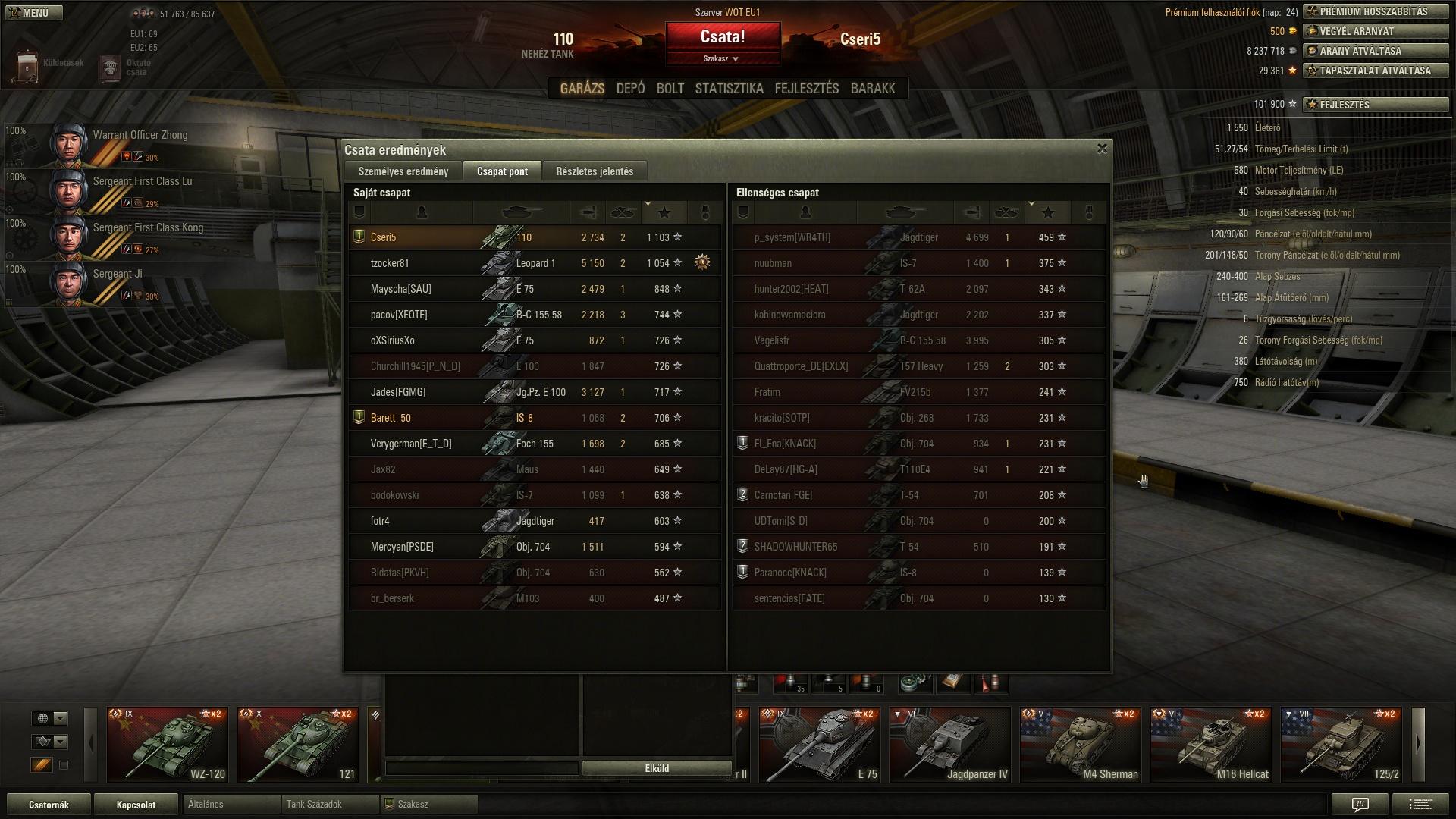 Ui. majdnem kimaradt, pedig fontos infó: a tank az ágyú átütése miatt max. T9-es tankokkal kerülhet egy csatába, idáig 4 olyan ütközetben voltam (kb. 20-ból) ahol voltak T9-es ellenfelek.