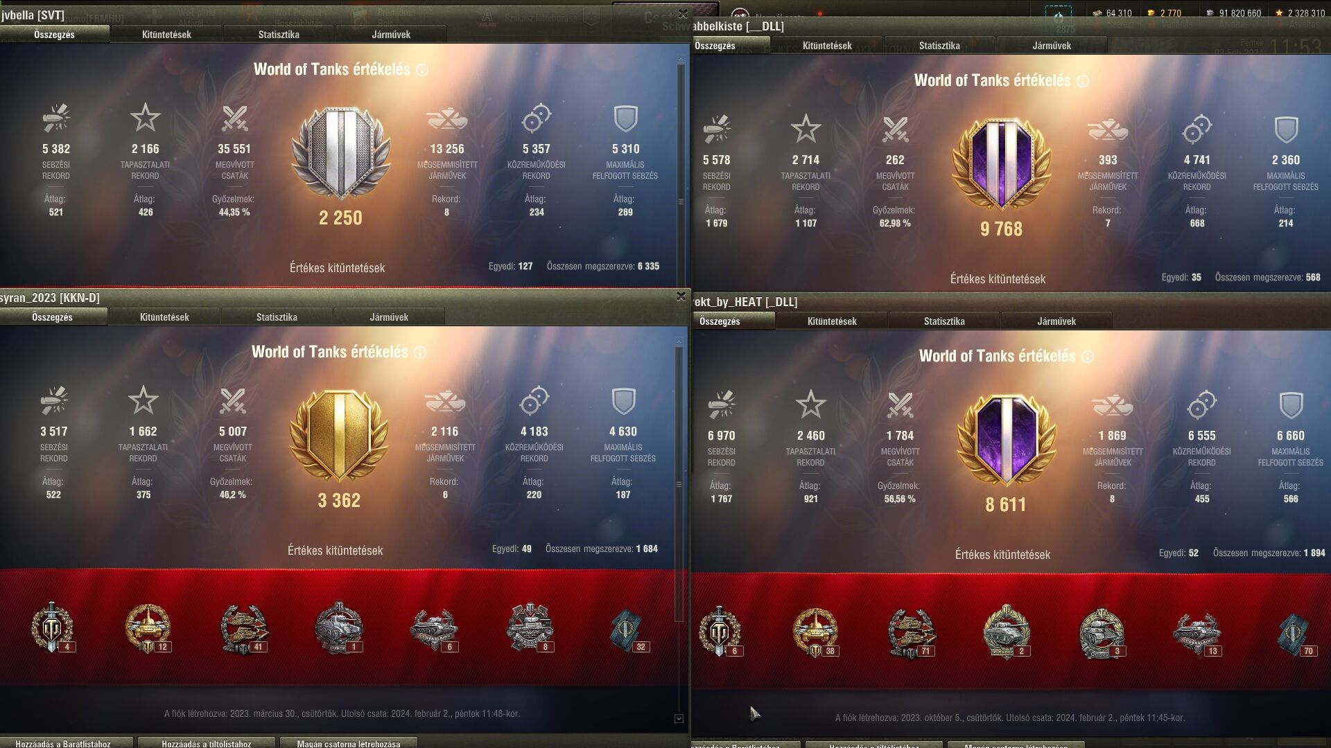 + van egy halom prém tankom és ha netán olyat nézel ki ami nincs meg akkor szólj szívesen kölcsön adom az accot és kipróbáljatok. (nem számít a stat, ha 20 0-ás kört mentek 0 WR-el az is mind1) -