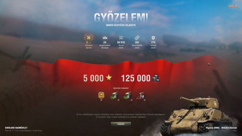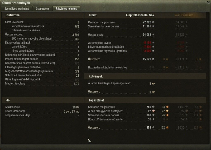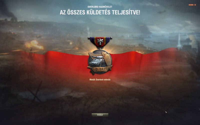 Győzelem! Csata: Overlord Járművek: FV1066 Senlac Szerzett tapasztalat: 3 063 (x3 minden nap az első csatáért) Kapott Battle Pass pontok: 32 Szerzett kredit: 55 571 Csatában elért kitüntetések: Felderítő, Tüzelj és ölj, Kiváló Lövész, Kiváló sofőr jelvény: "II. osztály" Küldetés teljesítve! Jutalom: Hozzáadva: Nagyméretű elsősegély készlet (x2), Leszerelő készlet (1x)