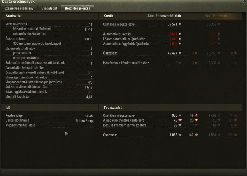 Most mentem egy 1850-es kört, 4 kill és azért kaptam 13k xp-t. Ha ezt ötszázasával kellett volna összeszedni, azt nem biztos, hogy vállaltam volna. Totál játszhatatlan td. A saját hp-mat alig tudom meglőni vele átlagban. 861 az átlagsebzésem vele. Az elődjével 1142 t5-ben. Pedig az se egy op cucc.