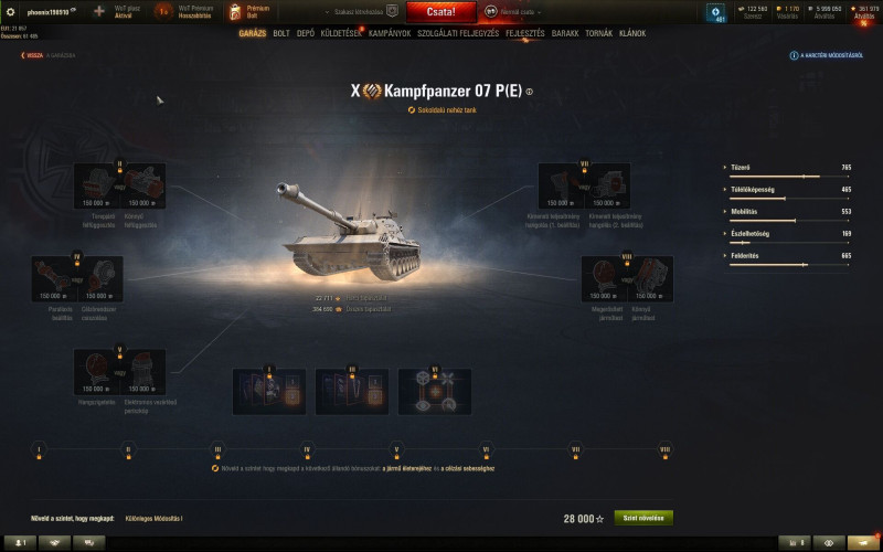 Sziasztok! Érdeklödni szeretnék,hogy hol tudom megnézni mennyi xp pontom van a következő tank megvásárlásához.Jelzem,hogy most kezdtem WoT-ozni és tök tapasztalatlan vagyok.Nincs (mert lejárt) és nem is akarok prémium fiókot de már sikerült egy IV szintű Panzer III J-t beszerezni.Szeretnék egy V szintű Pz IV H-t és ezért a Pz III J-t kell csatába vinni,hogy elérje a megfelelő XP (12.800)?
