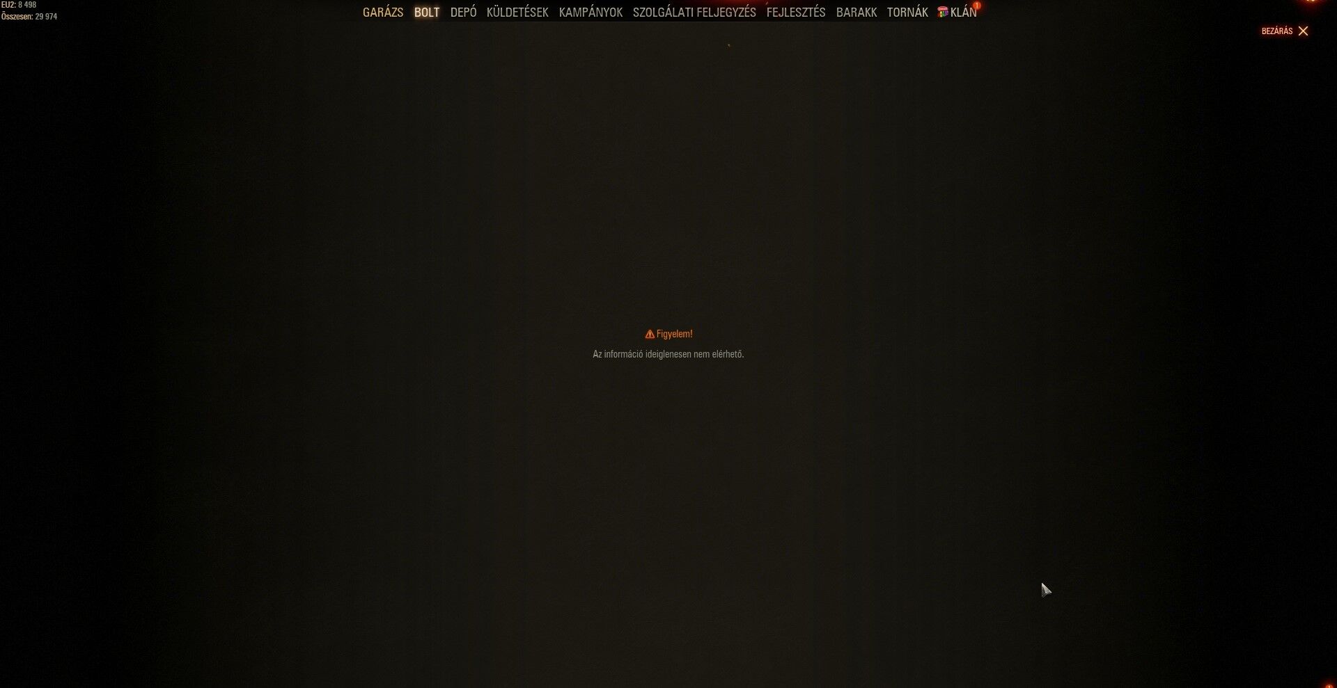Kíváncsiságból fel mentem WoT-ba is,de ott sem megy a bolt.Csak annyit ír hogy az információ ideiglenesen nem elérhető.