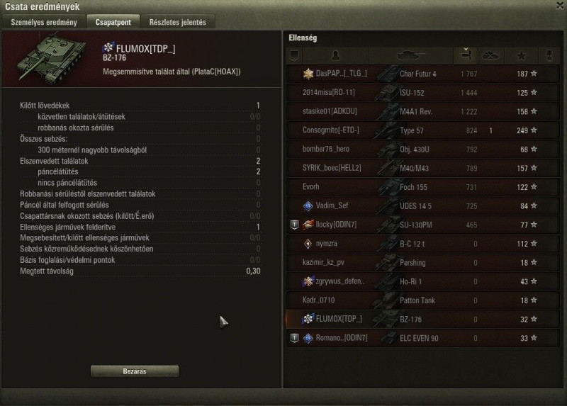 Sikerült befejezni a maradék küldiket is mára. Örülök hogy nem hagytam hétköznapra, mert nem lett volna idegrendszerem hozzá. Az időlimites kör volt szerintem a leginkább rázós. Megérte a sok 2D skin miatt nekem, sajnos kevés történelmi tartalom érkezik mostanában. Ha valaki abbahagyta a Burzánál a lengyel TD ágat akkor ne tegye. Szerintem a Gowika elég jó kis vas. Nagyon kellemesen csalódtam benne. A Burza ment a levesbe, a legpocsékabb tank amit eddig próbáltam.