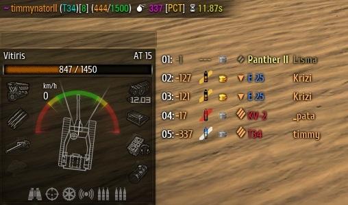 Nem rég vettem meg a T34-et és az 5-6. meccsnél produkálta: Kb 100m-re van tőlem egy TigerII. Becélzom, tüzelek, semmi. Ismét célzok, lövök, semmi. Se lepattanó, semmi. Mintha hátam mögé dobáltam volna a lőszert.