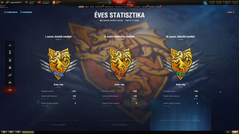 Kezdésnek ezüst alja lett, ahonnan voltam még bronzba is és nagyon sok csata kellett az arany eléréshez. Volt egy pillanat amikor le is tettem róla de szerencsére az utolsó küldetésnél (3win) A ban voltam és így azért megpróbáltam, hátha.