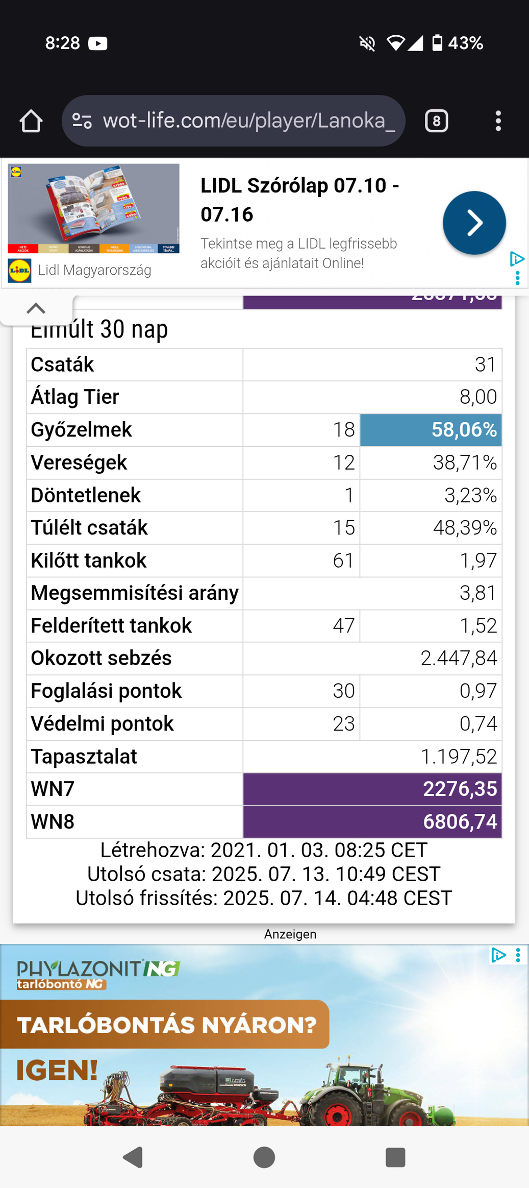 Részben kapcsolódó mai csatám. 3. legtöbbet sebeztem és nem kerültem be az első 10-be xp-ben.