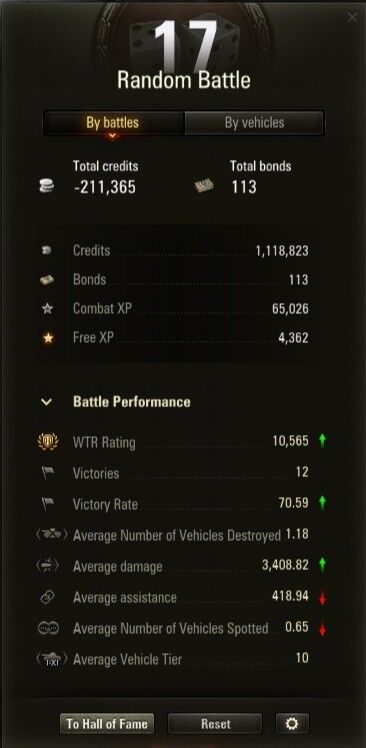 Hogy a francba emelkedik minden nap az elvárás, ha hozzám képest rosszabb átlagot hoznak? Ha netán jobbat, az is csak pár kör. Vasárnap 94,7%-on voltam, tegnap direkt nem játszottam, mára még feljebb ment az elvárás. Hogy lehet, hogy én a 60+ csatámmal nem, de más játékos 5 csatája befolyásolja? Természetesen ennek okán már nyilván 93%-ra buktam. -