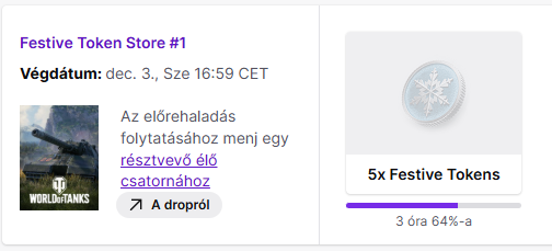 wot official twitch csatornán lehet gyűjteni a tokeneket 3 óra pörgetéssel 5 tokenért.
