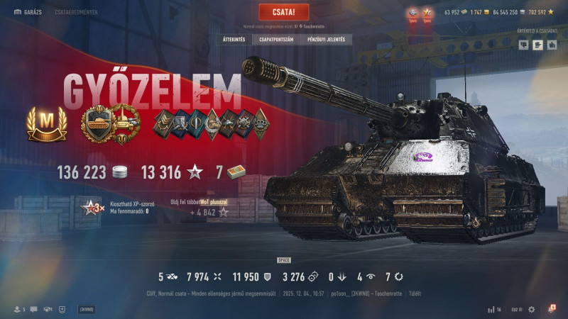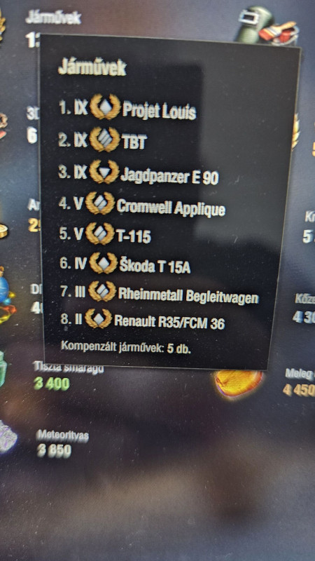 Hatodiknak beadta a JPZE 90-et, 56. a Projet Louis-t. A többi a kis tierű szarok, 4-5x duplázta meg őket.