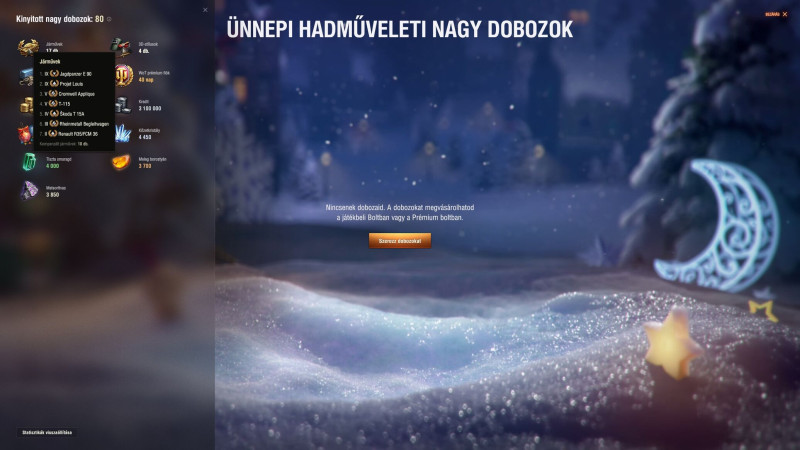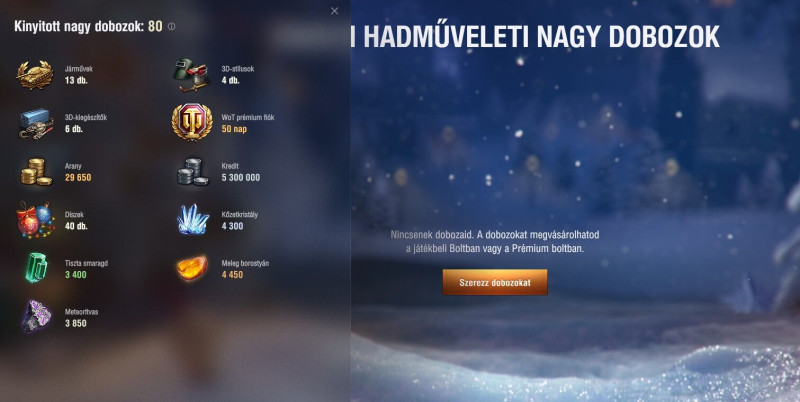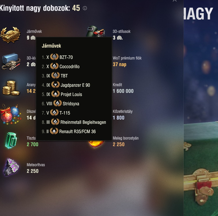 Nyitottam 80 ládát az első 20ban csak alacsony tier tankok voltak, majd kiadta a következőket: