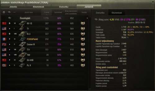 Aha, vannak tankok amiket szeretek, jol is megy vele, de akkor is csak 52 vele a winrate... Es van ami olyan se nem volt jo, se nem rossz, de megis 60% felett voltam vele... -