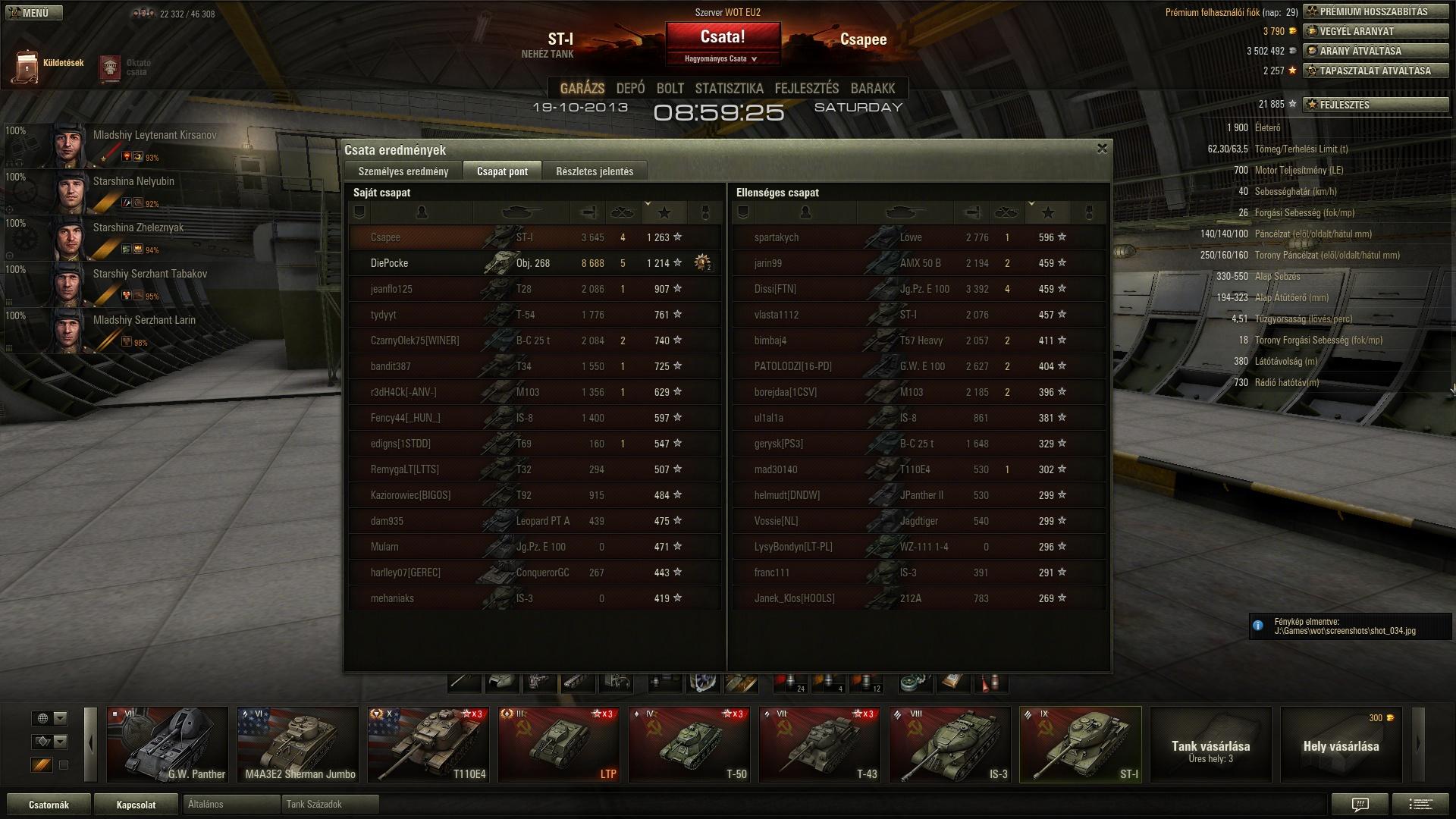 Ennél csak a su12254 jobb, mert teljesen stock még nekem (ugyanazzal az ágyúval van még, mint a Su101, csak kicsit gyorsabban tölt) 56 csata után 61% WR, 2000 feletti átlagsebzés és 900 feletti átlag xp. Ez még stock, ha rákerül mindenből a jobb, akkor feltételezem a mutatók is javulnak tovább.