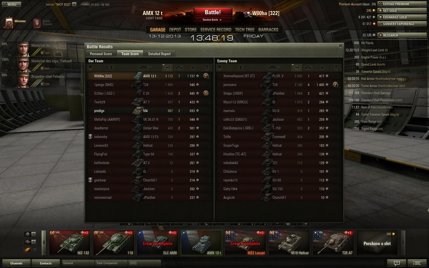 - Fixed incorrect sorting of players by XP in the after battle statistics window upon receiving reward for ‘Honorable Resistance’