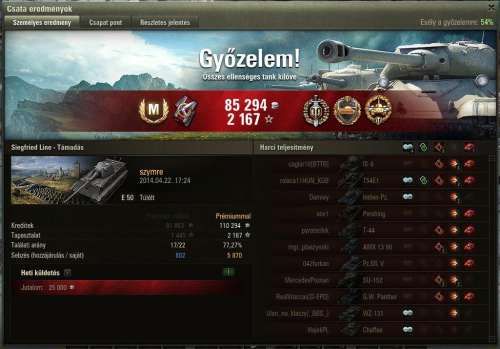 Egy javaslat, a leírásan a replay állományok wotreplay-es linkjét is betehetnéd, sajnos nem minden alkalommal tudom megnézni a kész videót, de a csatára magára kíváncsi lennék. (Plusz régebben az általam használt modok miatt több infót kaptam a replay fájlból, mint abból a videóból, amit általában készítenek az emberek)