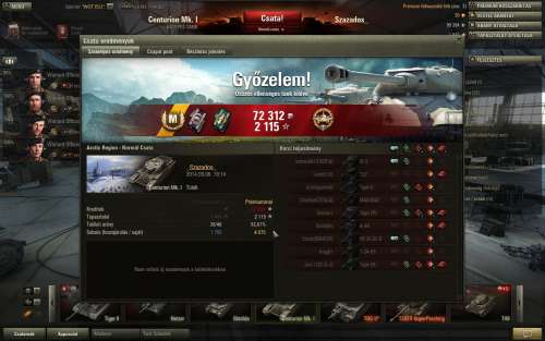 Sajna elkövettem ugyanazt a hibát az angol med ággal, mint a kínaival. Hogy csak a med ágon mentem (kínainál a wz spotter vonalon), ezért volt egy kis szopó a Centurion 1-gyel és lesz is még a Centi 7/1-gyel. Írtam már, hogy senki emberfiának nem kívánom (najó, dfsz néha a határon van) azt, hogy fullozzon ki egy WZ-120-at úgy, hogy előtte csak a skótokkal ment. Kicsit hasonló volt az érzés a Centi eggyel is, mert a full stock ágyúval kellett kifarmolnom a tornyot és a nagy ágyút is (láncot tett rá creditből), ami a Cometről hozott ágyúval enyhén durva. A Black Prince/TOGII ágyúja tudom, hogy jó, de még az se volt meg, így nem tudtam mást tenni, mint jóformán csak arannyat betöltve felkészülni a mínuszokra és farmolni. A Comettel ugyan nincs meg az ászom, de a Centi ebben kárpótolt, ráadásul a stock, Kométa ágyúval, amin jót röhögtem