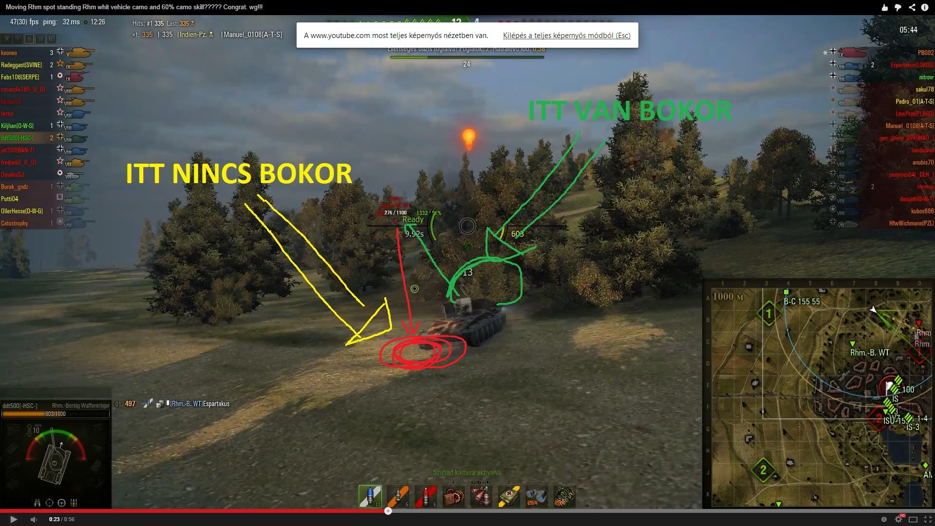 Őt takarta mert, nem mászott át rajta, de ő átlát rajta - még sosem játszottál azzal, hogy a tankod éppen átlásson az előtted lévő bokron, hogy tudj spotolni magad előtt, de lövés előtt kicsit hátrébb gurulsz - nem látszik át a bokor - és csak a tankok kontúrját lövöd?