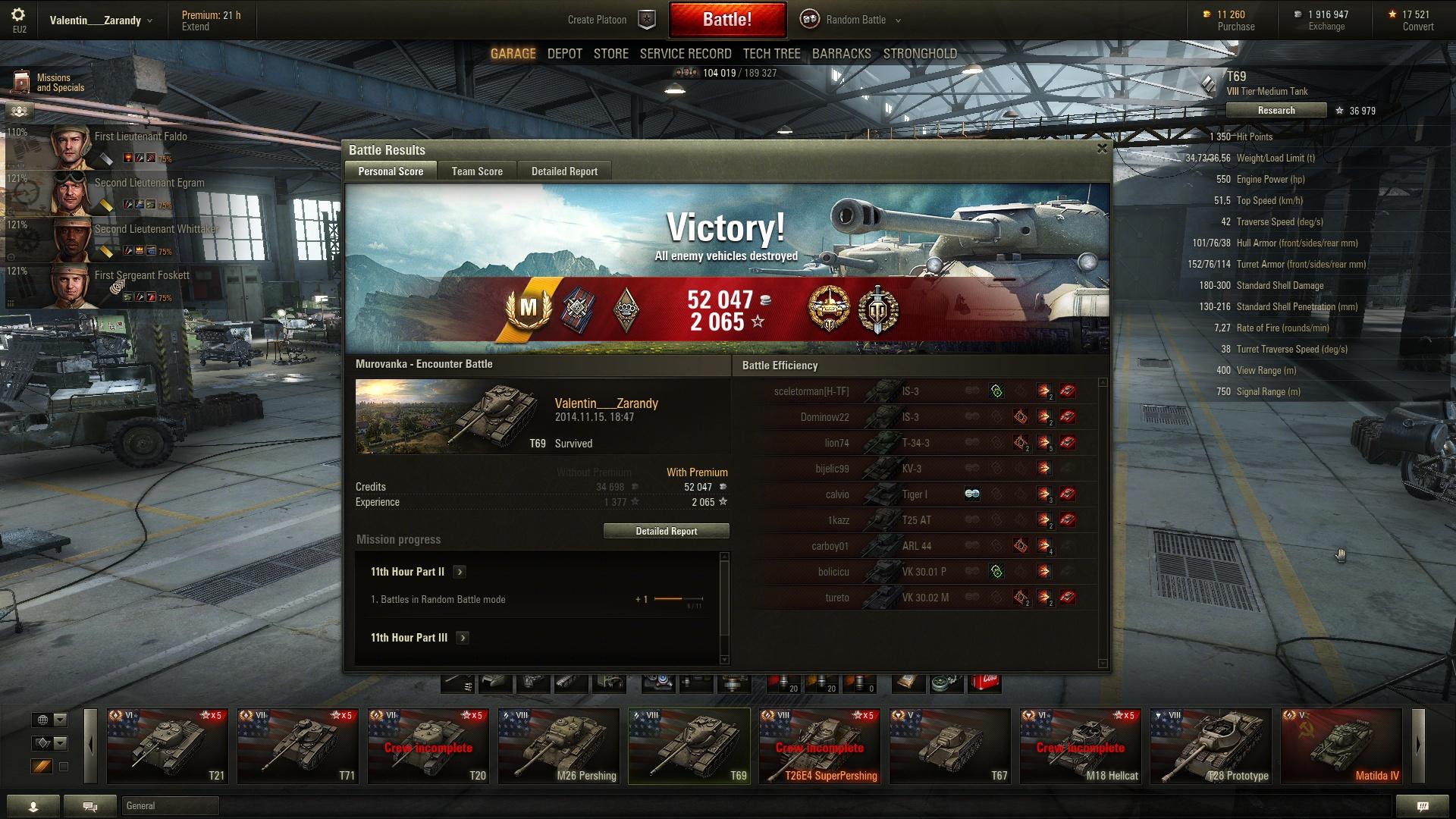Ma elhatároztam hogy végre megcsinálom a napi 11 győzelmet is hogy meglegyen a 3 nap prém. Eltartott egy darabig, (délelőtt a laptopomról játszottam legalább 10 csatát, az ebben benne sincs):