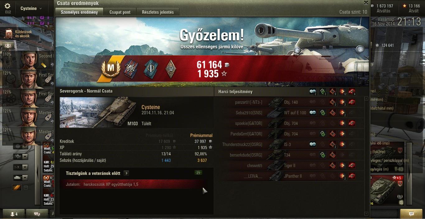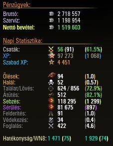 Az akcióban vettem 50 pudingot megnézem azzal milyen lesz az átlagom.Az átlag tp-nél viszont rühellem, hogy beleszámítja a prémiumot is. Egyszerűen nem igaz az amit kiír. Az összesítés is szar, de az egy csata alatti max tp is baromira idegesítő. A gép szerint pl T29-cel 1927 a max tp-m ami prém nélkül csak 1284 pedig volt vele 1500 feletti csatám is. Nem hiszem el hogy ez mást nem zavar