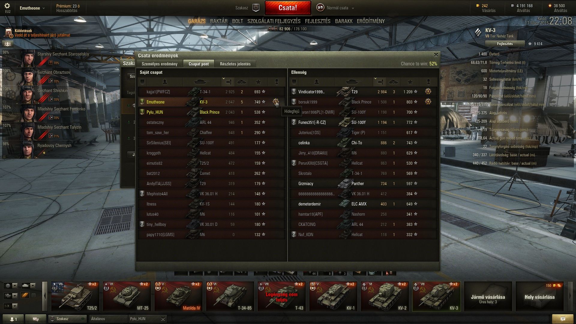 Kicsit lomha de időnként tud meglepetést okozni.Tigris II és jagtigert általában sikerül elintéznem ha 1vs1-be vagyunk és van lehetőségem forgatni a tankot. Jelenleg 223 csata után 56%-os a győzelmi rátám vele. -