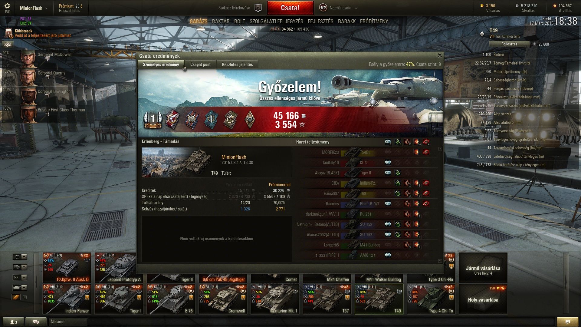 Baromi lehangoló hogy végigszenved egy ágat az ember és a t10-es jármű annyit tud mint egy t8-as.Kb 30 csatát játszottam az obj.261-el de ezer feletti dmg-re nem is emlékszem pedig átlag 1100 a dmg.