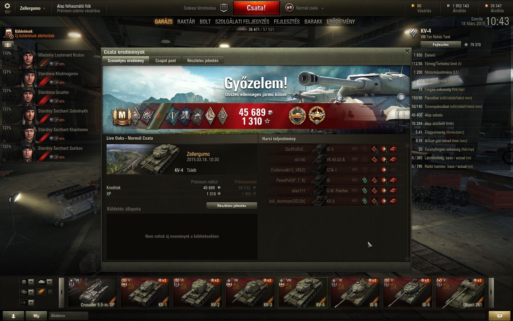 Skillben egyelőre a javításra gyúrok mert a tüzérség előszeretettel lövöldöz rám még akkor is ha 5-en vagyunk egy helyen.Nekem egyébként tetszik a KV4,igazi orosz benyomást kelt.