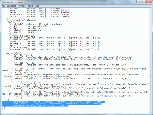 A legújabb xvm alapconfigból (d:\xvm-6.1.0.1\res_mods\configs\xvm\default\carousel.xc) ki tudod lesni,hogy hová/hogyan kell beilleszteni.