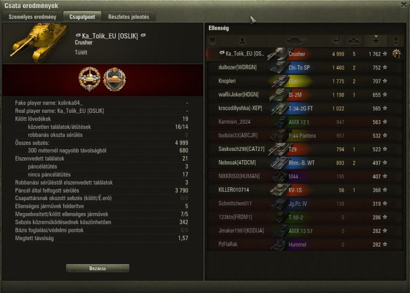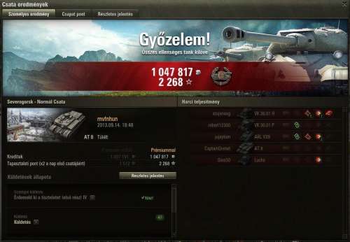 Ami még rosszabb, hogy nagyüzemi frag lopás megy a hétvégi mission miatt, rosszabb mint a 30 frag - 300.000 credit esetében.De legalább megvan a Type T-34 tank ász is.