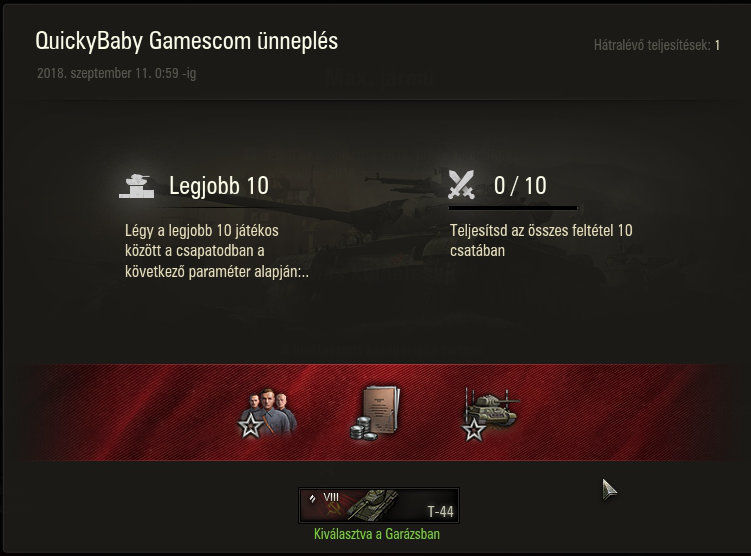 A randomban élő napi küldik ebben a módban nem élnek, pl. hiába nyersz, az első győzelemért járó dupla/tripla szorzót nem kapod meg. Az elért rang alapján jár XP bónusz, erre érdemes hajtani. Én pl. egy alkalommal tábornok lettem és összesen 9K XP-t kaptam (nincs most premiumom), ami a használt tankok között megoszlik.