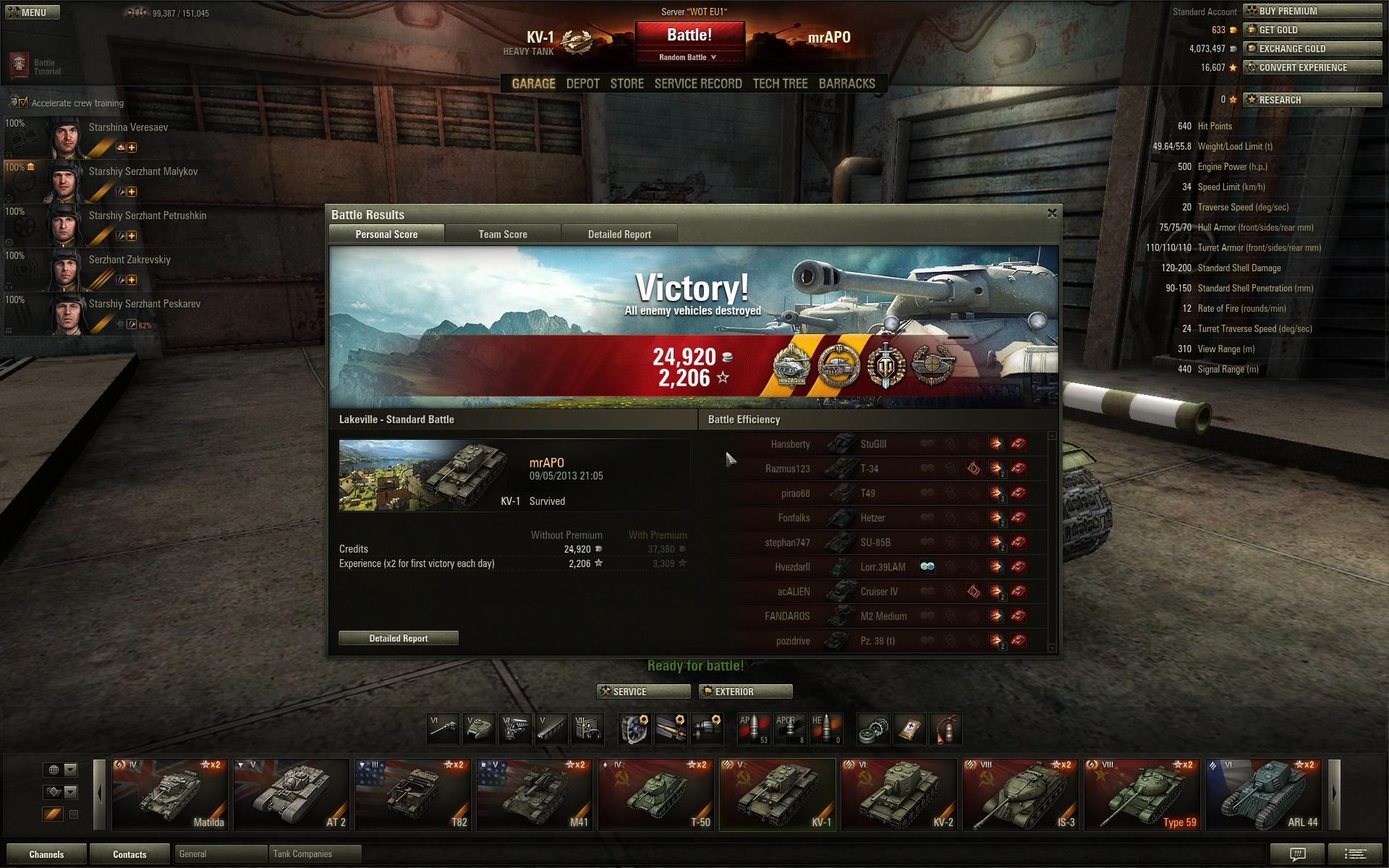 Beleszaladtam egy nagyon anyázós hetzerbe (Fonfalks). Nem tudta megemészteni hogy én lőttem ki a többséget, így őt is a végén. Kemény 93 csatával osztotta az észt hogy a kv-1 mennyire OP.