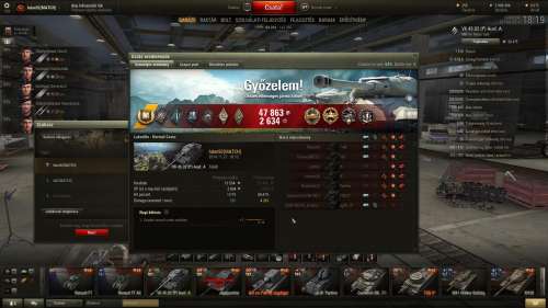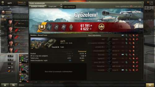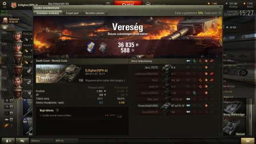 Csatában elért Achievement: Top Gun, Nagy kaliber, Kiváló sofőr jelvény: "Tank ász"[link] Mondjuk, ha van xvm-em és látom, hogy az E4 teljesen agyhalott, akkor nem fedezem, de így elmondhatom, hogy mindent megtettem az érdekében, de nem élt a lehetőséggel, pedig nem sokan álltak volna oda megmenteni.