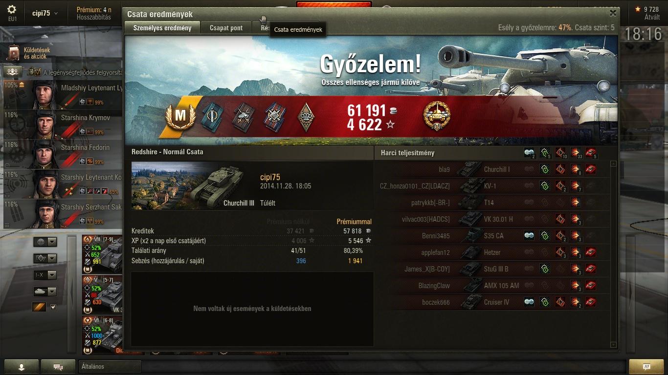 Szerzett tapasztalat: 6 096 (x2 minden nap az első csatáért)