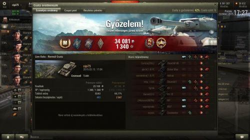 De a legjobb a TOGII-es győzelmünk. 1-et lőttem azt is mellé, minden 0! A következő csata meg az első Tank Ász a agdpanzer IV-el. 15. csatára beadta, ez talán az egyéni csúcsom. Főleg hogy sok vasat elég sokára tapasztalok ki, lévén "önképző" játékos.