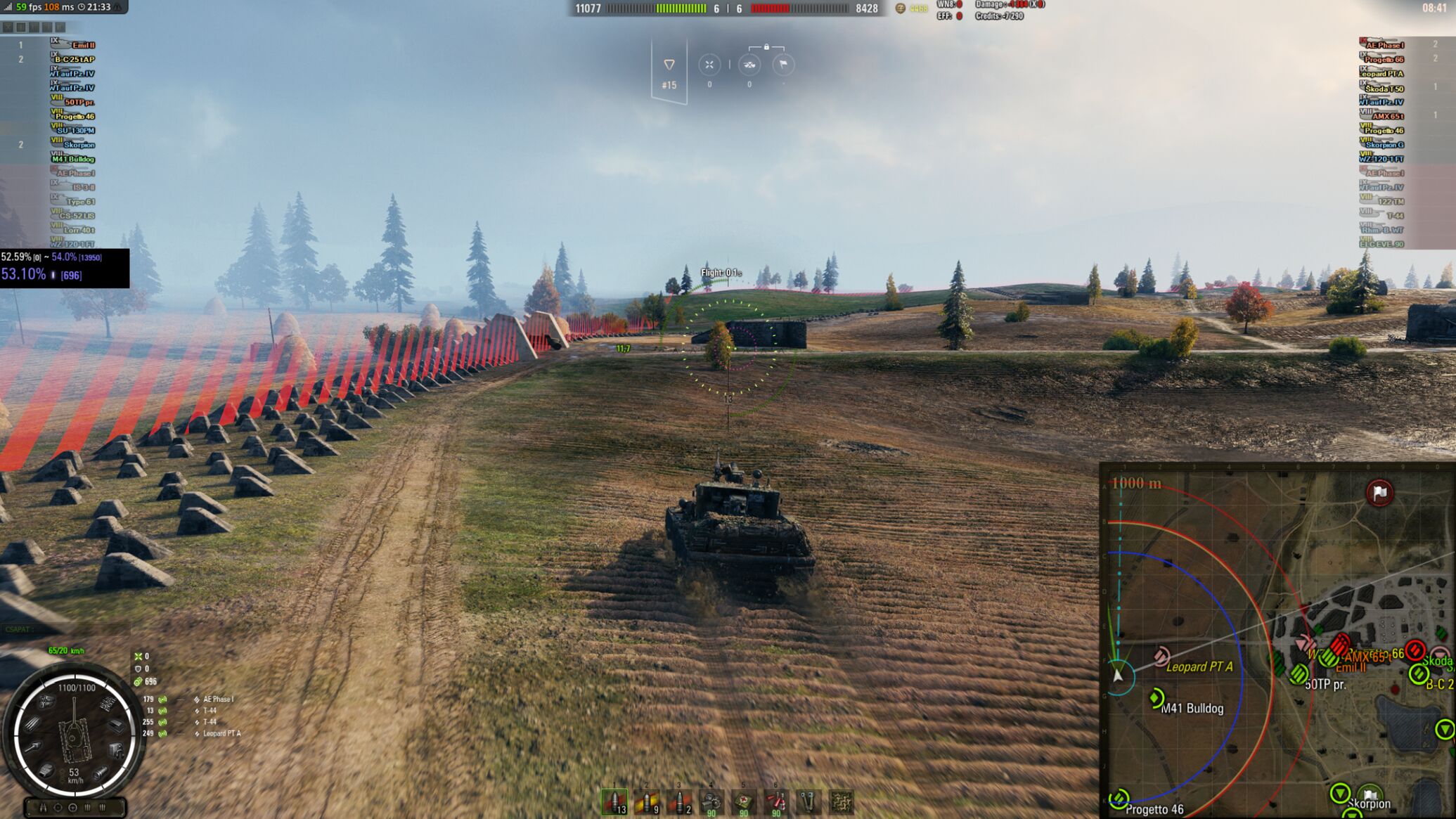 Az én Skorpio G páncélvadászom miért nem tud ilyet ? Kinéz , lő ... kinéz , lő ... de abban a pillanatban amint kinézett , ráadásul 2x. Száműzte a játékos a löveg szűkülését ? Bezzeg én ... ha nincs csutkára beszűkülve a löveg , akkor mindent - is - eltalálok , csak az ellenséges tankot nem . Persze , az is lehet , hogy annyira érezte a fickó a tankot , annyira profi volt , hogy a rendszer nem tudta hátráltatni a szórásképpel .