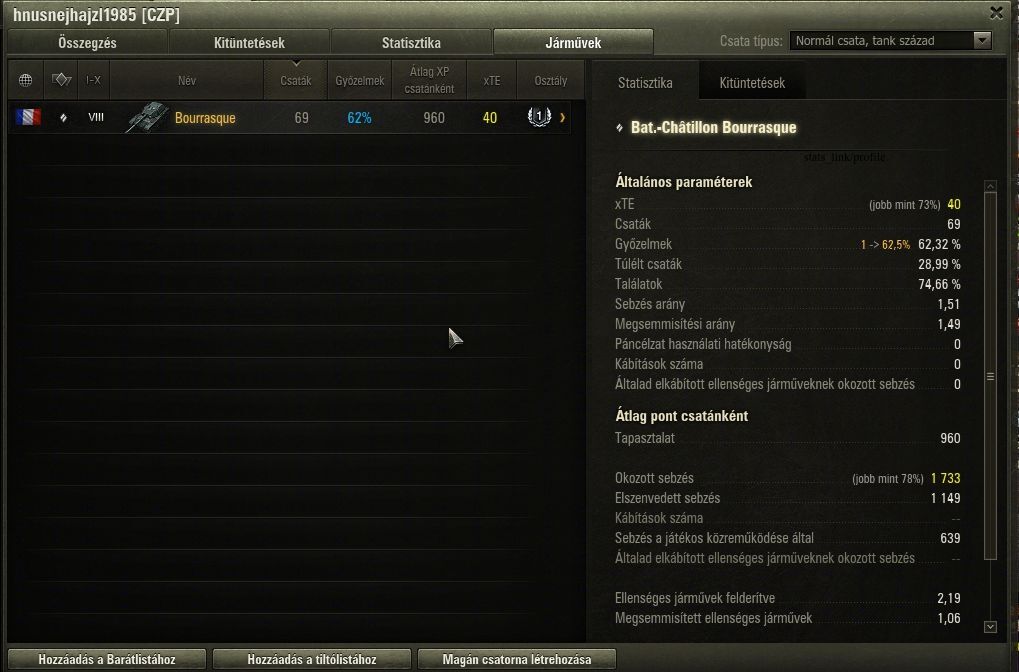 Nem merek belegondolni ... ha az én pocsék teljesítményem elég volt , hogy a legjobb 1000 játékos között - akik min 50 csatát toltak vele - a 227. helyre elég , akkor mit alkothattak a mögöttem lévők ? Borzalmas köröket mehettek . Főleg az 1000. helyhez közeliek ... gondolom , minden 3. csatában egy értékelhető találatuk volt .. max .