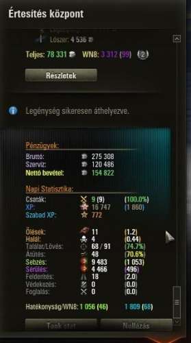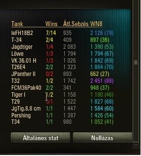 4K csata mellé 1019-es a WN8-am, ami nekem megfelelő, hisz a célom a zöld érték. Persze érzem, hogy T8-T9-ben már nem könnyű megfelelni, de én inkább ott erősödök, hisz ott minden hiba komoly HP mínusz.