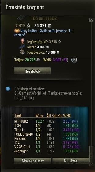 fsb1000:nekem is még csak 87K nettó volt a max, de az ász is elég lenne már, de még nem akarja, mondjuk olyan sokat nem is mentem vele. Most az le105 a kedvenc, de tegnap annyira **** volt, hogy a 2000-es wn8-at levitte 1400-ra... Egyszerűen nem talált. Előző nap megették a kaját és másnap büntettek. Volt olyan kör, hogy 20% volt a találati arány, pedig nem csináltam semmit másképp, mint addig.