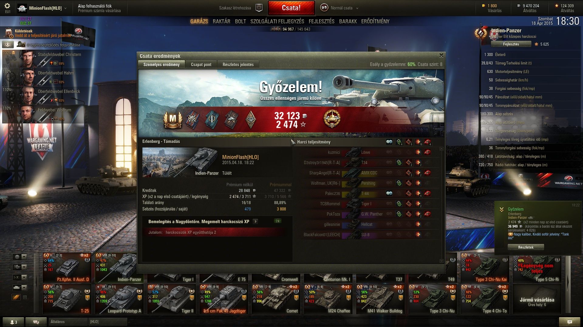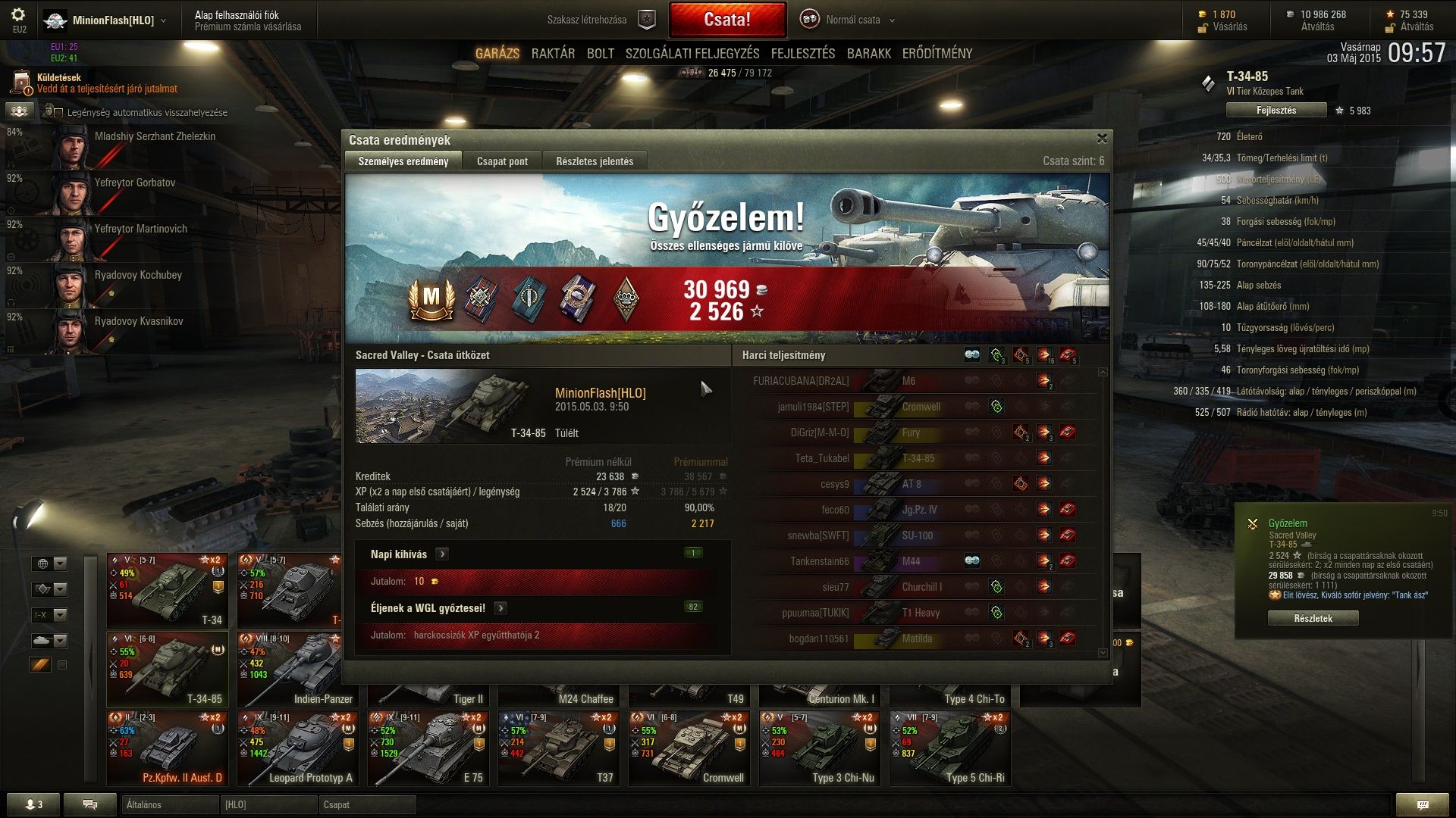 Cromwellre 1951XPre adta meg az ászt, T34-85-el kaptam 2374XP-t! Tudom azon a héten nem játszottak az olyan pro emberek mint TE a hatalmas 90 fokos OP tornyú, és testű kizárólagos OP tankkal!