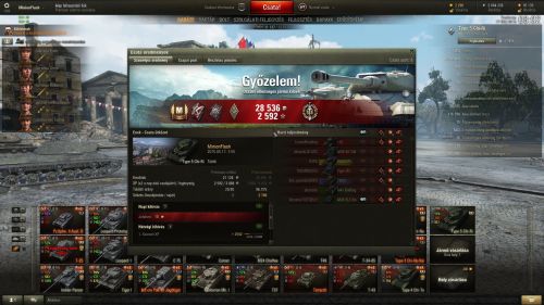 Igazából befoglalt a KV4, pedig még két lövés lett volna az RHM aki igyekezett vissza resetelni. Érthető volt IS6,KV4-ünk nagyon low hps volt. Egész csata alatt jól tudtam helyezkedni, a T28 Prototype-ot nagyon megszivattam, közelről csak a tornyom látta mikor kidugtam, beállt frontba, de a toronygyűrűjét 4/3szor belőttem. Ő mellélőtt, vagy pattintottam.