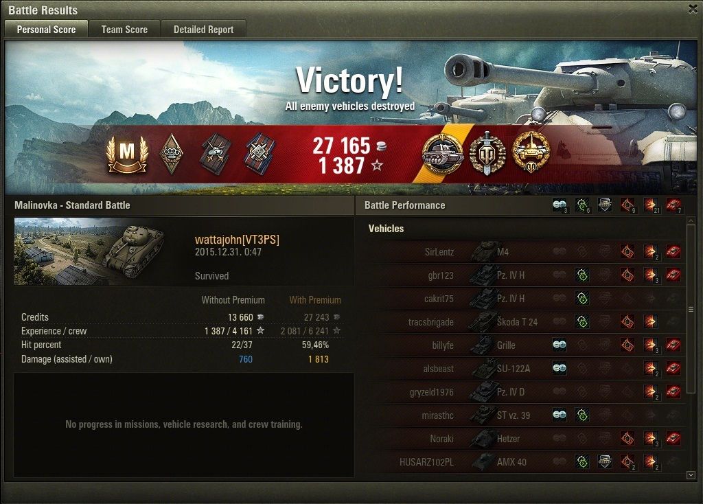 Nem volt egy epik csata, de végig hátrányban voltunk, és úgy őszintén nem adtam sokat hozzá a csapat játékához(nem mintha lett volna mihez). De a végén 5 ellen simán hoztam autoaim-el(najó, 11mp-el a vége előtt lőttem ki az utolsó tankot, kicsit rizikós volt, de kellett a medál