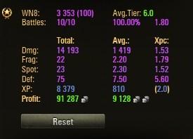 Én meg azt mondom - ha már statról van szó, számomra a sebzés és a győzelem egyaránt fontos (mindezt a lehető legkevesebb gold lőszer felhasználásával). Ha ez a kettő tényező jól alakul, akkor a wn8 is jó lesz a legtöbb esetben + a XP és kredit is jön. Ennyi.