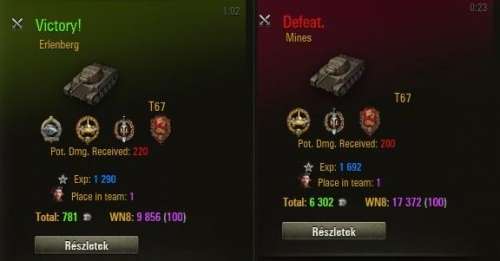 Tegnap, tegnapelőtti csaták vbaddict logjából mutatok most pár csatát, így látható, hogy hol a fejlődés a WN8 esetében, és hol nincs.