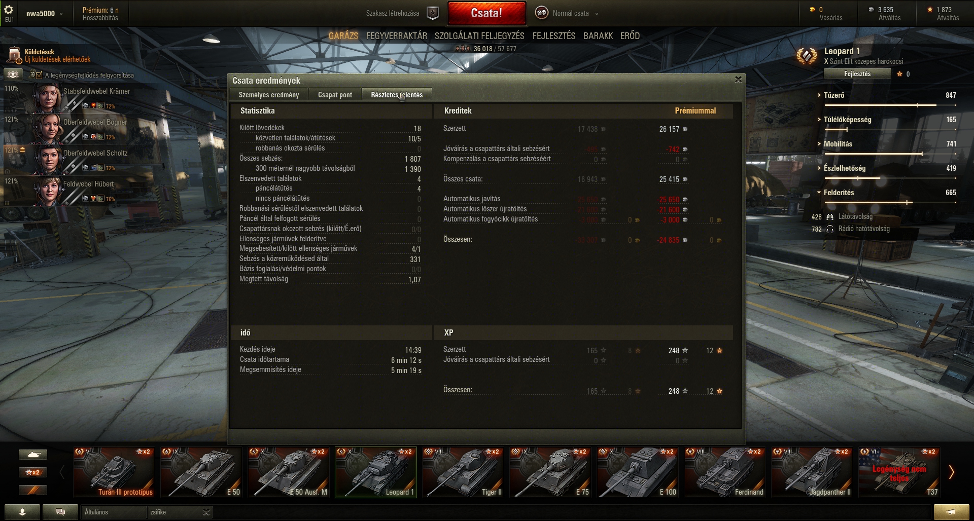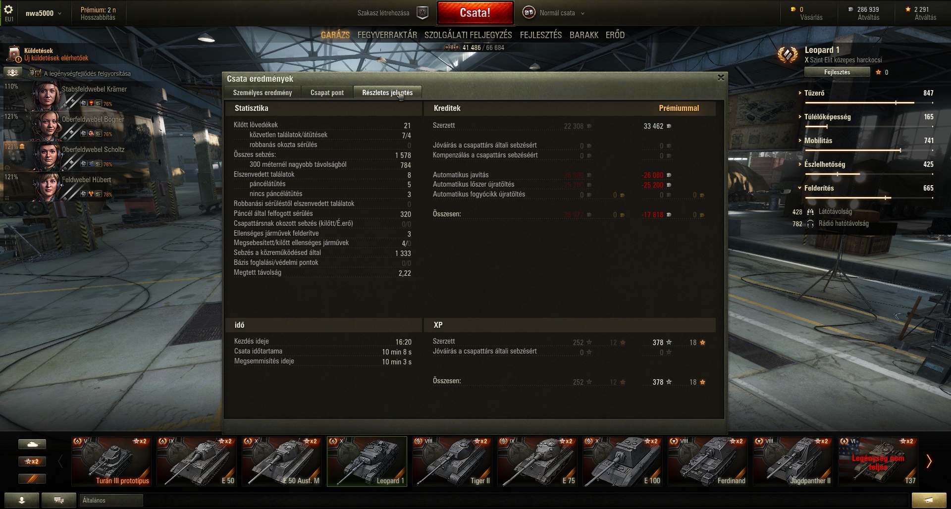 Annyira rossz volt ma az rng, hogy arra gondoltam, hogy eladom az összes tankot az E100 kivételével, aztán az E100-al full golddal addig játszok, ameddig van lóvé, aztán hanyagolom 1-2 hónapig a játékot. Majd egyszer csak elkezdett működni a dolog, az rng Istenei meghallgattak és egész jó csatákat toltam a Leo1-el.