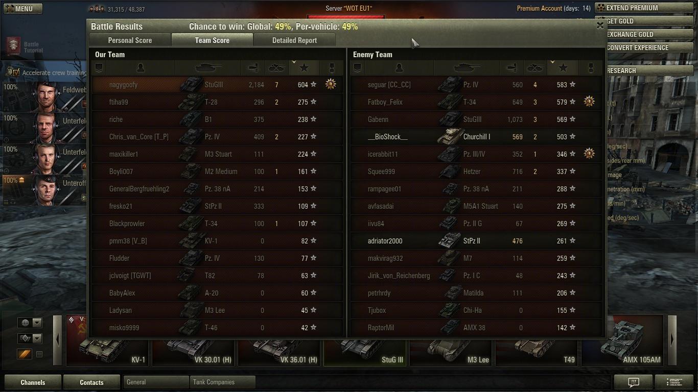 Én szoktam elég sokat irányítani és van, aki követi a tanácsokat, így nyerünk egy-egy meccset. Random csatában ha van 3-4 tank, akik együtt játszanak akkor nyerték is a meccset... Újabban szeretem, ha a kis nyolcasaimmal tízes csatába tesz, mert ott valamivel több az értelmes arc.