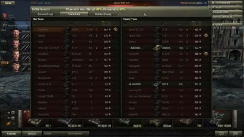 A vicc az abban, hogy megint csupa ügyes közé osztott (nem az MM miatt bosszankodok, hanem amiatt, hogy minden nyomorék tankozhat), hogy a V_B klános okoska végig adta nekem az instrukciókat amikor egyedül maradtam a végére 5 ellen... Aztán egyszer még hallgattam is rá, valamint felidegesített és elkezdtem kapkodni. Valahogy la lehet tiltani a chatet ebben a játékban?