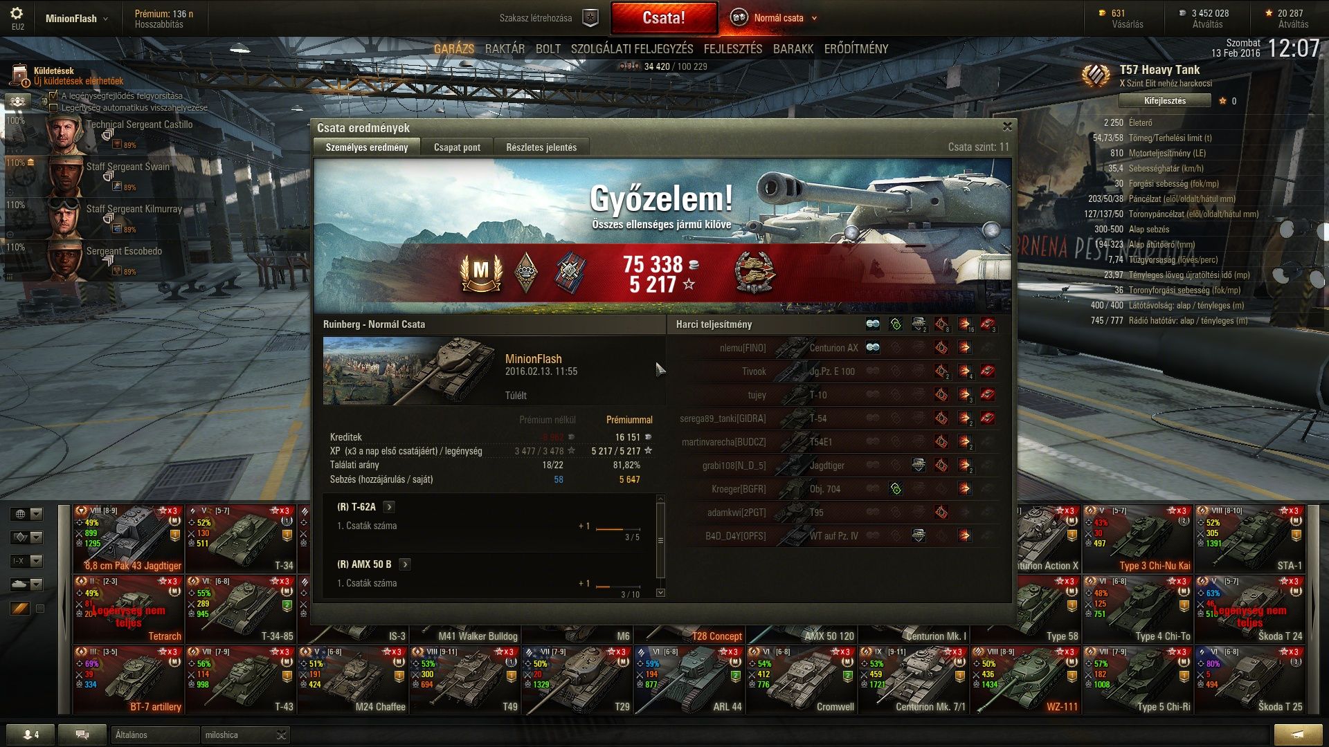 Lehet most sokan megköveznek, de a T54E1 szerintem sokkal jobban használható, mint a T57, tehát élvezd ki mert a heavy szerintem csalódás lesz hozzá képest.