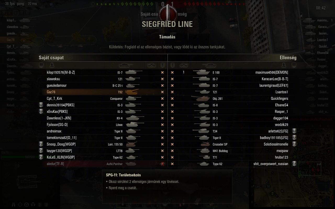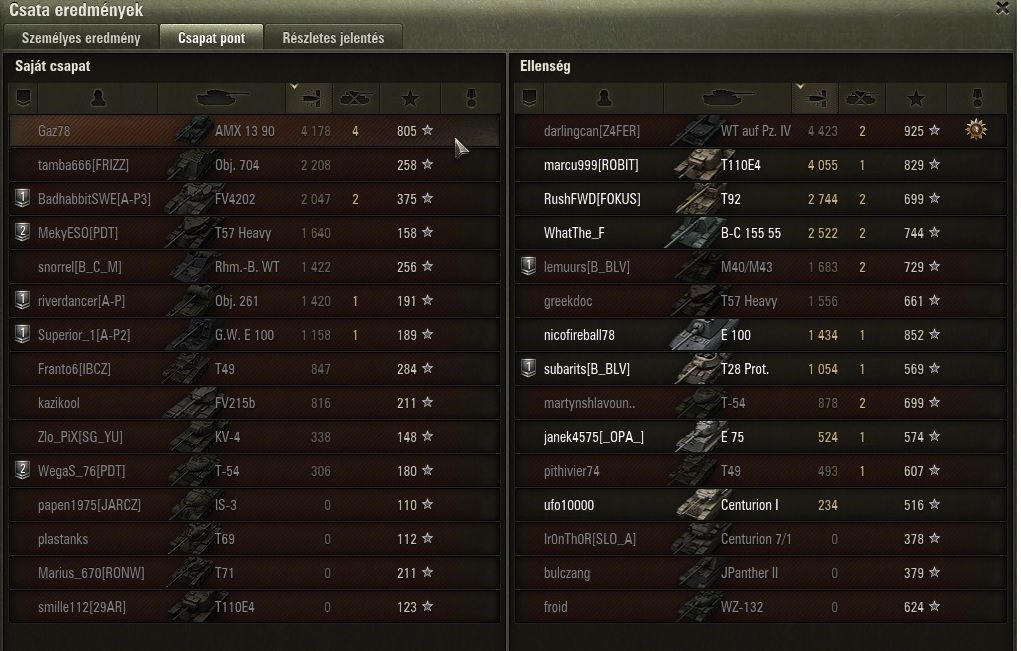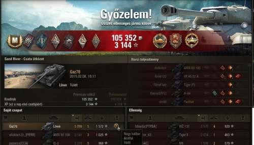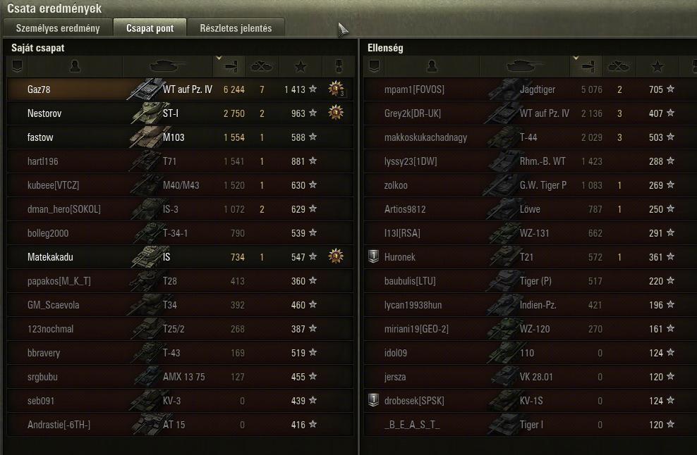Isti101: A mozgékonyságára nem panaszkodom alap mocival is jòl megy.A löveg pontatlan ha nem szűkül be teljesen a célzò. A függőleges kitérithetősége egész klassz.a páncél gyenge.Jelen pillanatban ezzel a legénységgel gyorsitò nélkül 8,5 mp alatt tölt ùjra ez a löveg.Àlcája klassz