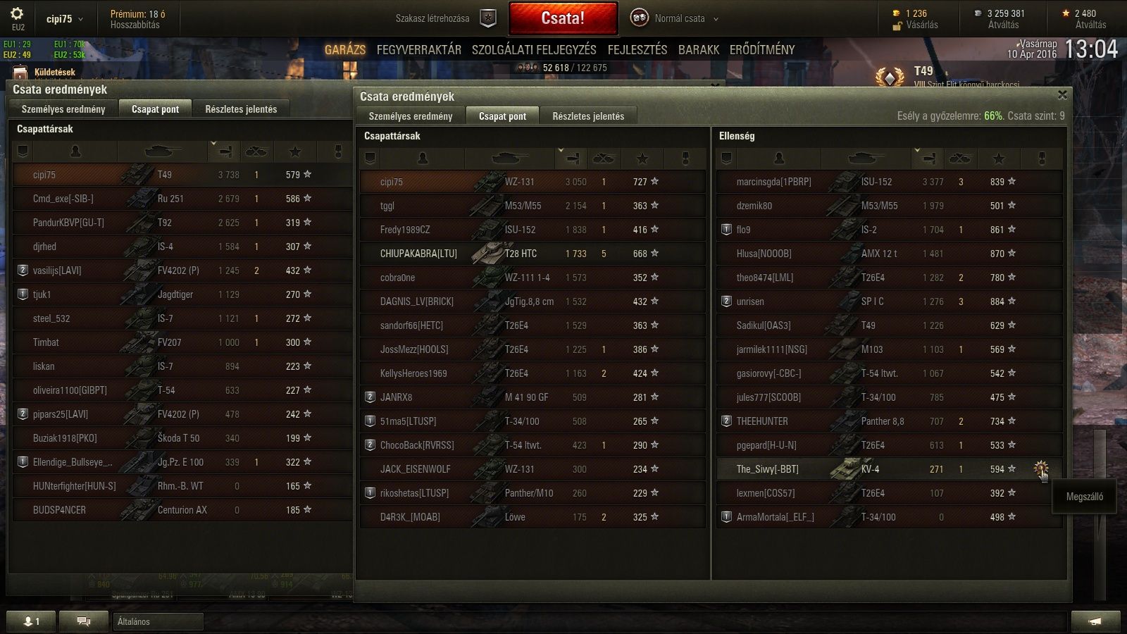 A sajár csapatomból is többen beírták, hogy reportolnak, mert cheater vagyok.Azzal bezzeg senki se foglalkozik, hogy volt előtte 4-5 olyan csatám, amikor 1000 alatti sebzésem lett, mert semmit se talált el.
