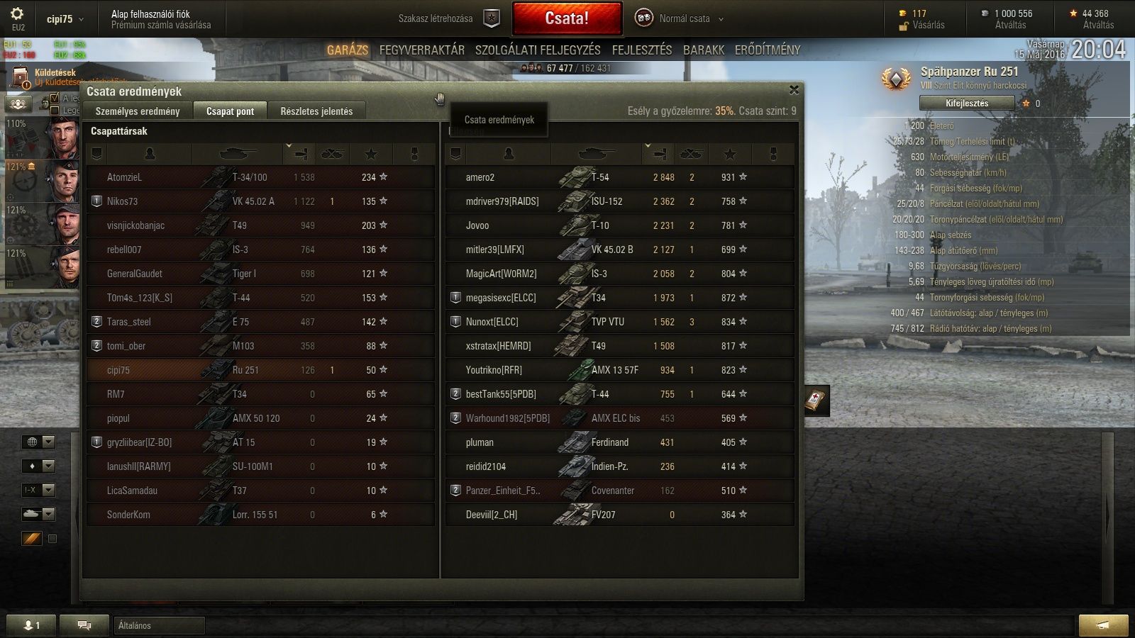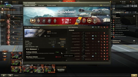 Amikor a három top heavynk magyar, mind bőven 2k wn8 felett, és az ellen top játékosának sincs 1500 wn8-a akkor is bukta a vége, és persze az űberek nincsenek benne a top 10 xp-ben, mert azt vették a fejükbe, hogy nekiállnak a pálya sarkából wn8-at lőni az orosz sebésszikékkel.Eddig azt vallottam, hogy az a csapat veszít, ahol több a lengyel, de ez a pár nap egy picit átírta a törvényt.